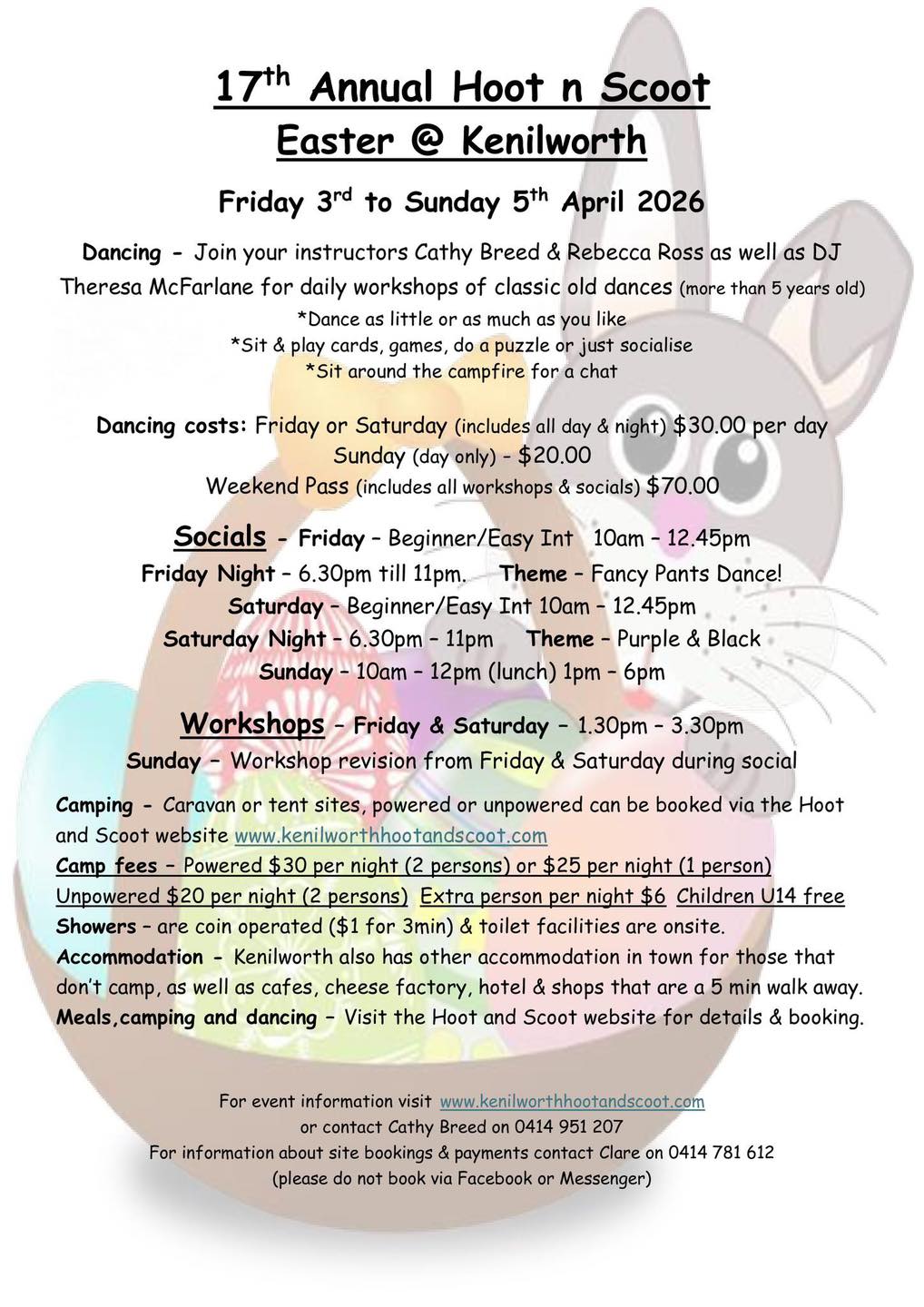 For information about site bookings & payments, please contact Clare on 0414 781 612